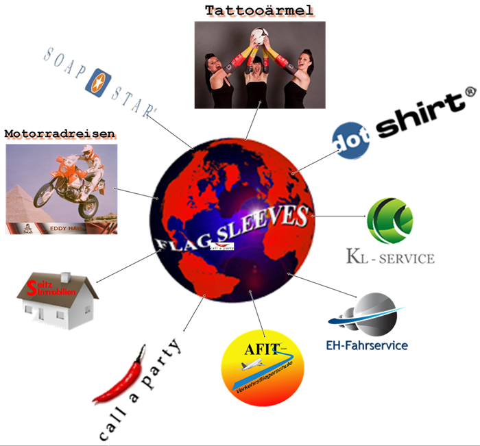 umfasst verschiedene Unternehmen, die ihre Leistungsfähigkeit und ihre Tatkraft sowohl in der Produktion als auch im Dienstleistungsbereich für Sie anbieten. Die einzelnen Mitglieder stellen ihr Wissen, ihr Engagement und ihre innovative Neugier in Ihren Dienst. Die entscheidenden Größen des Erfolges sind unser enormes Know-how in Bezug auf Produkt-, Design- und Servicequalität. Die Bandbreite an Unternehmensleistungen in der Flag Sleeves Gruppe folgen einem einfachen Prinzip: